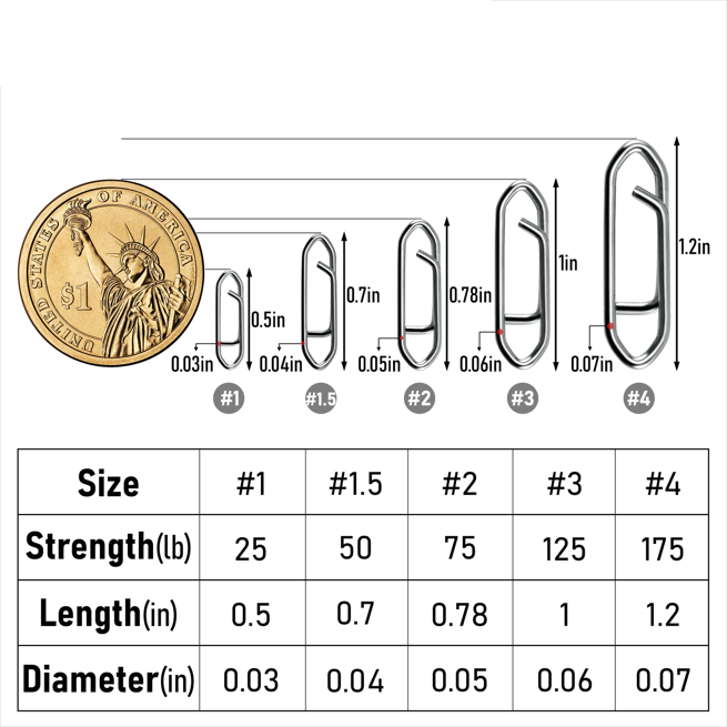 Dr.Fish 100pcs Power Speed Clips 25-175lb