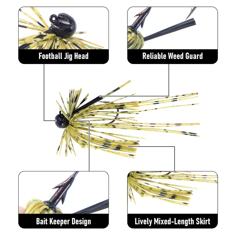 Dr.Fish 2pcs Football Jigs with Silicone Skirts 3/16oz-3/8oz