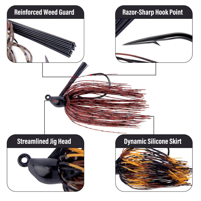 Dr.Fish 2pcs Weedless Bass Fishing Jigs